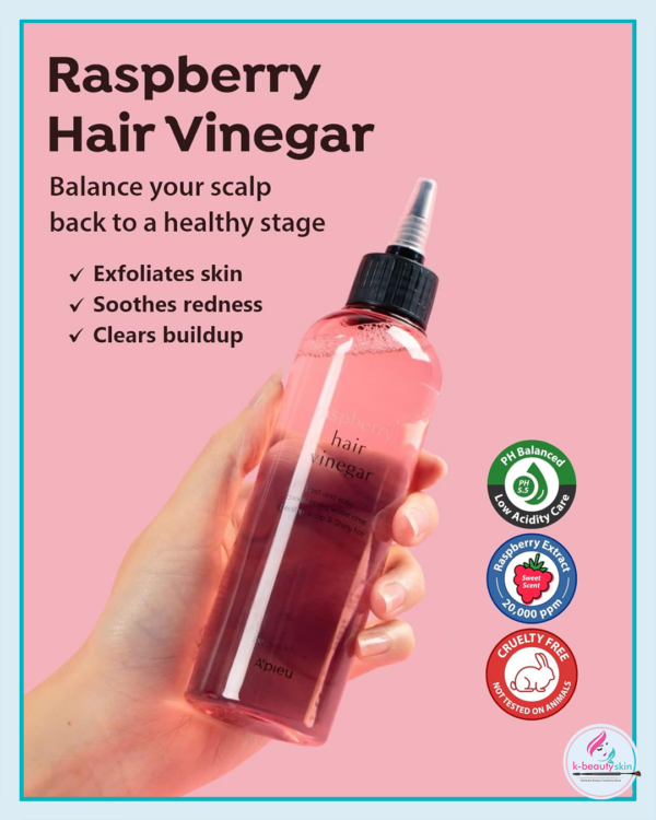 Packed with raspberry extracts, phyto keratin and vinegar as well as additional herbal extracts, this moisturizing hair rinse not only offers intense nourishment for the scalp while balancing pH levels, it also helps to soothe and purify both scalp and tresses.