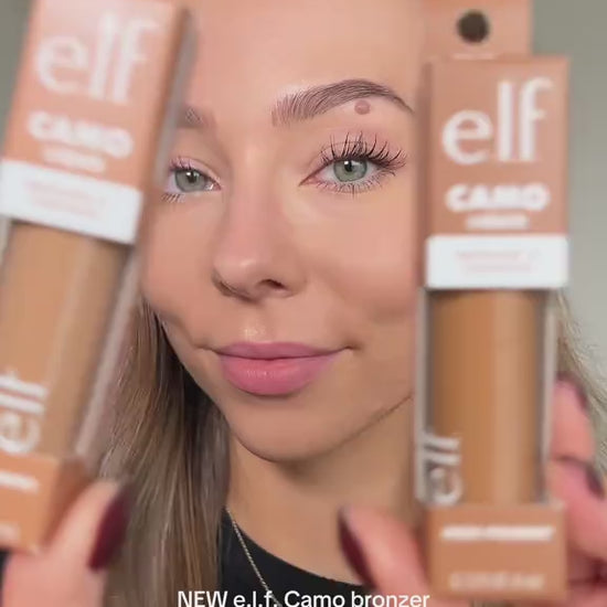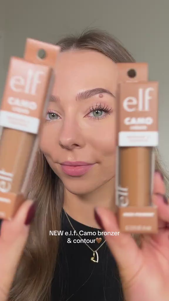 Create a sun-kissed, sculpted beat with the newest addition to the Camo fam! This lightweight, pigment-packed liquid bronzer and contour hybrid gives you a long-lasting bronze and blends out to a natural-looking finish. The rounded, grooved applicator makes it so e.l.f.ing easy to create gorgeous definition.