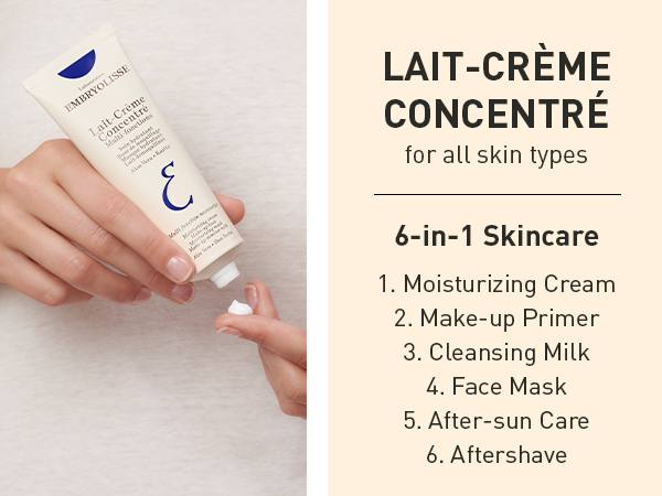 6-in-1 with multiple uses: face moisturizing cream, make-up base, moisturizing mask, make-up remover milk, body milk, or even a soothing after-shave care. It leaves a veil of softness and suppleness on all skin types, even the most fragile.