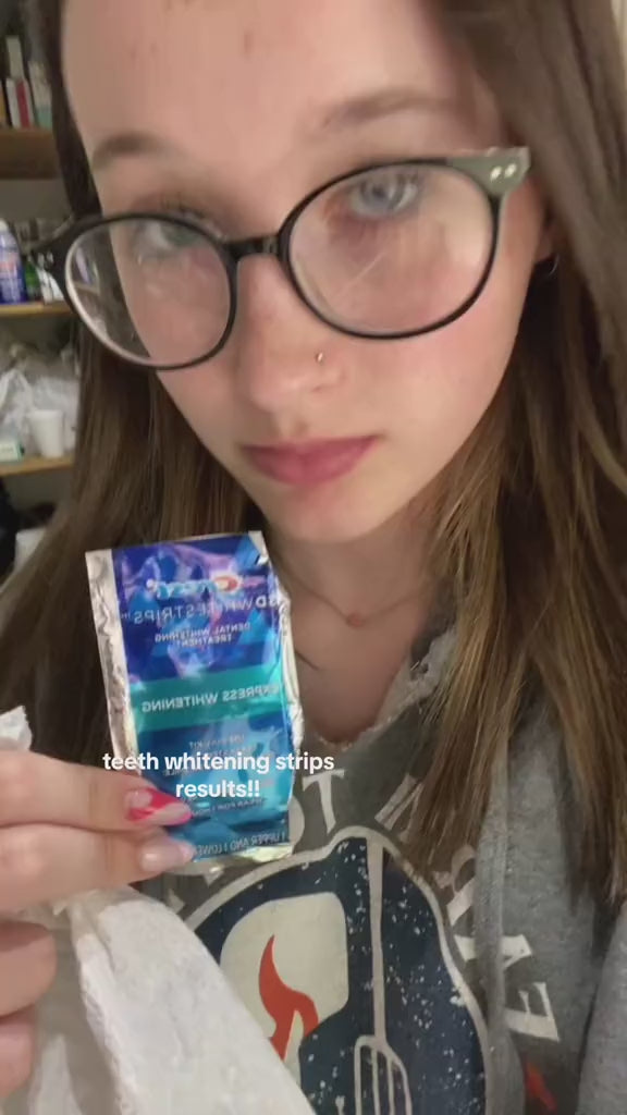 Peroxide-containing tooth whitening gel coated thin flexible strip.